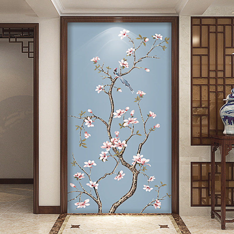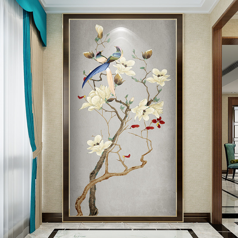 Modern New Chinese Wallpaper Seamless Jade Orchid Bird Mural Painting Genguan Wallpaper Aisle Book Room Living Room Background Wall Cloth
