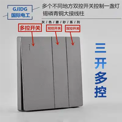 International electrician 86 Wall home wallpaper dark silver gray switch socket panel package three open three control multi control