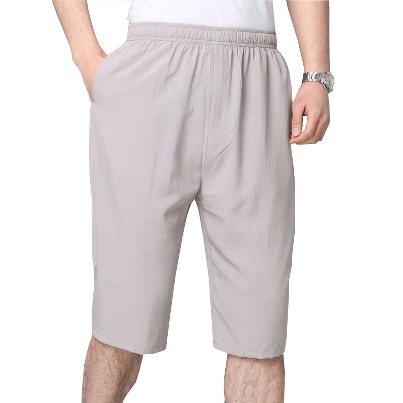 Old age ice silk quick-drying shorts cropped pants male summer dad loose old man grandpa casual shorts wear five pants outside