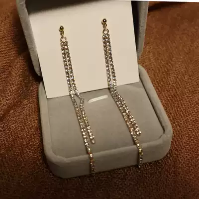 American 14K gold gold jewelry hand made simple temperament diamond Super Flash long ear tassel original earring ear needle