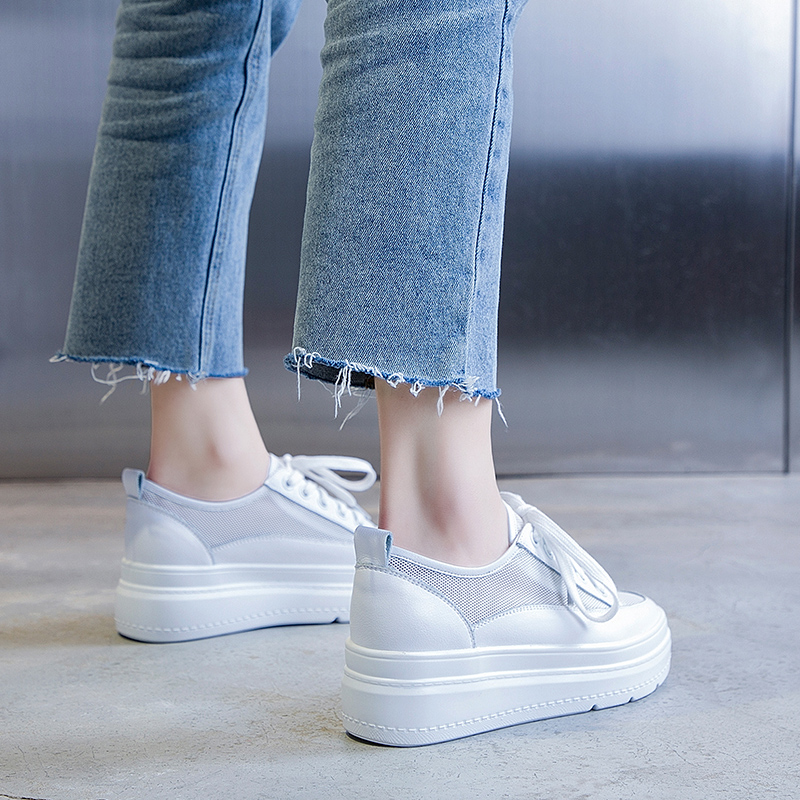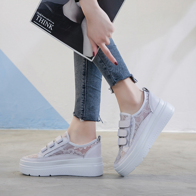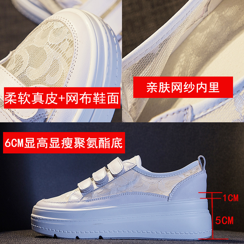 Small white shoes woman 2022 new 100 lapped thick bottom inner heightening net shoes female summer lace mesh surface breathable casual board shoes