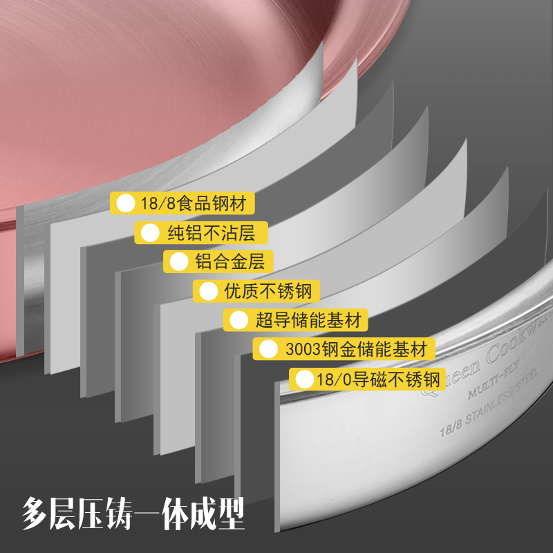 Berfa 304 stainless steel flat bottom branded cake pan 28cm queen pan with no stick pan gold pan 3 liters frying pan