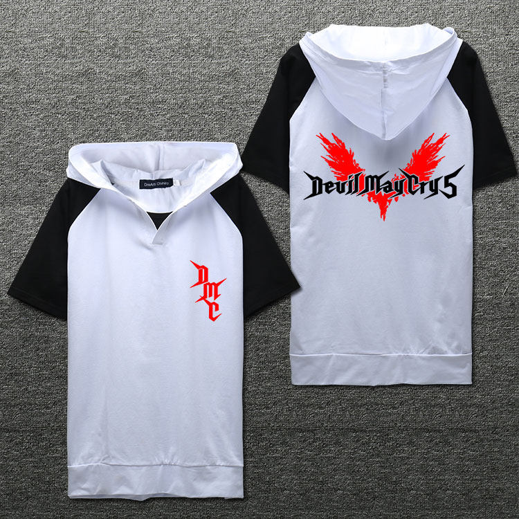 Devil May Cry 5 Short Sleeve Hooded T-Shirt Game Surrounding Short Sleeve Hooded Devil May Cry 5 Handsome Personality Printing Trend Spring and Autumn