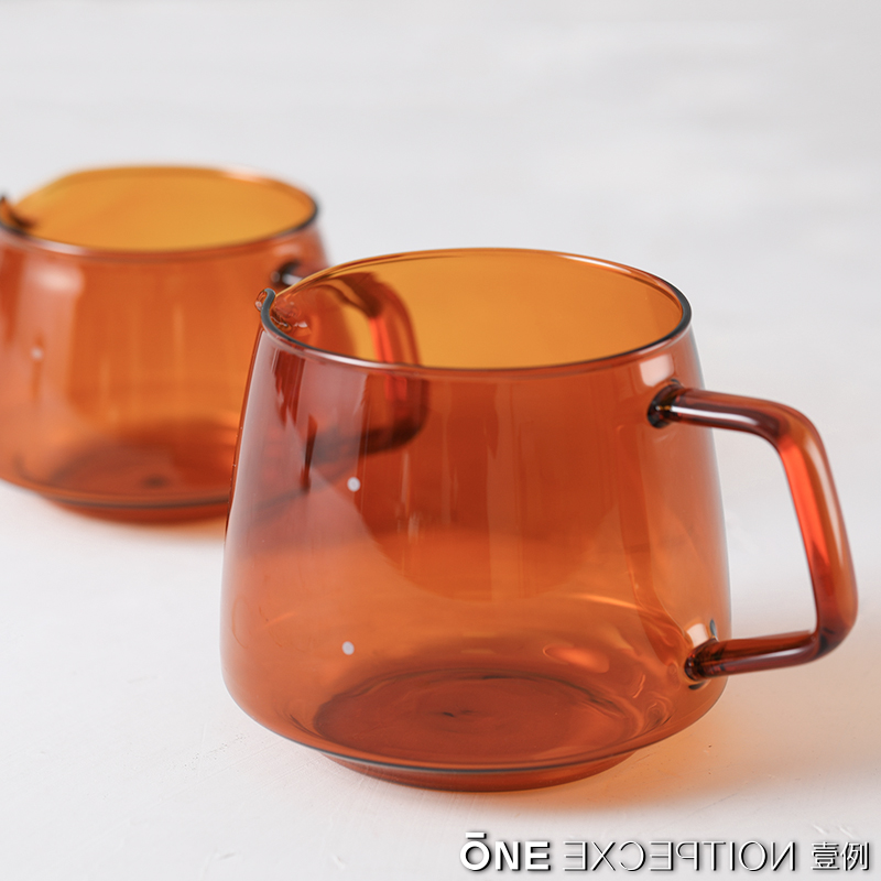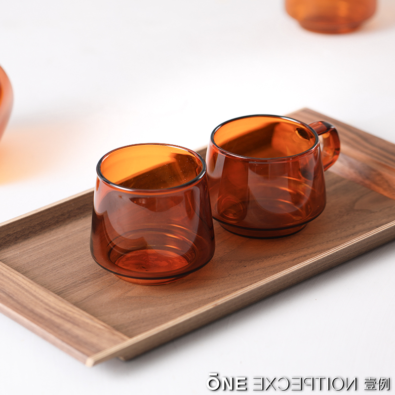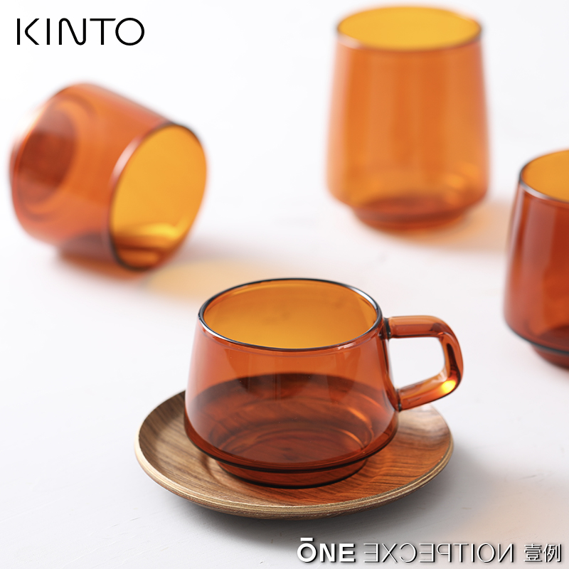 One example of Japanese KINTO SEPIA series of amber-coloured heat-resistant glass-cup hand punching coffee cup tea cup