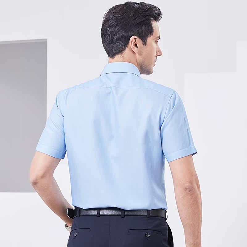 Youngor short-sleeved shirt men's blue cotton DP free ironing slim square collar middle-aged new summer men's half-cut shirt