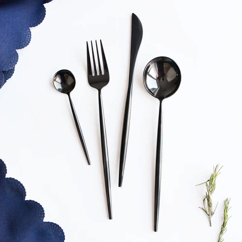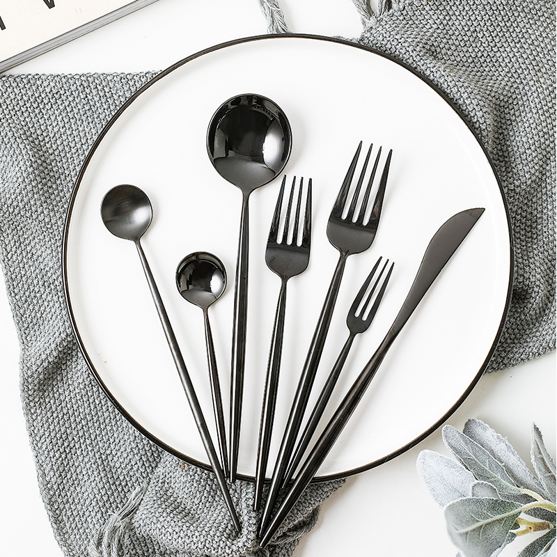 Portuguese Mirror Light Black Cutlery 304 Stainless Steel Knife Fork Spoon Three Sets Coffee Sweet Spoons Nordic Steak Knife