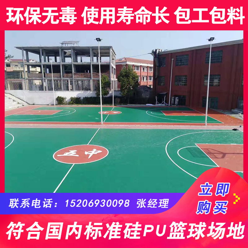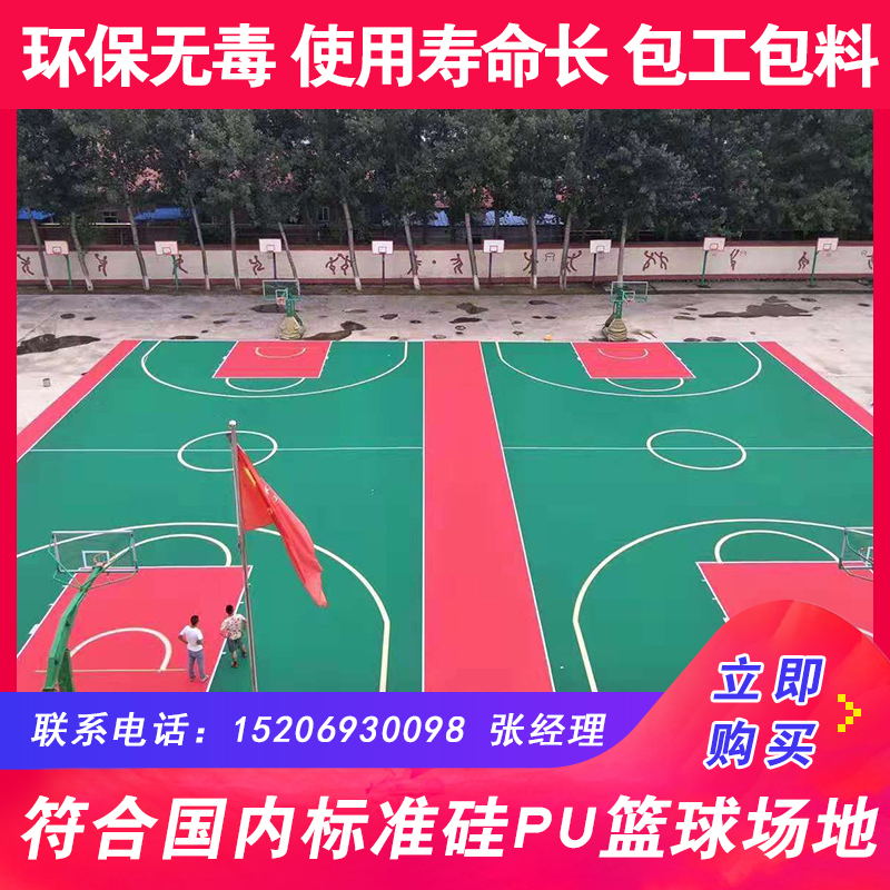 Silicon PU basketball court, plastic court, badminton court, plastic track court, environmental protection material construction