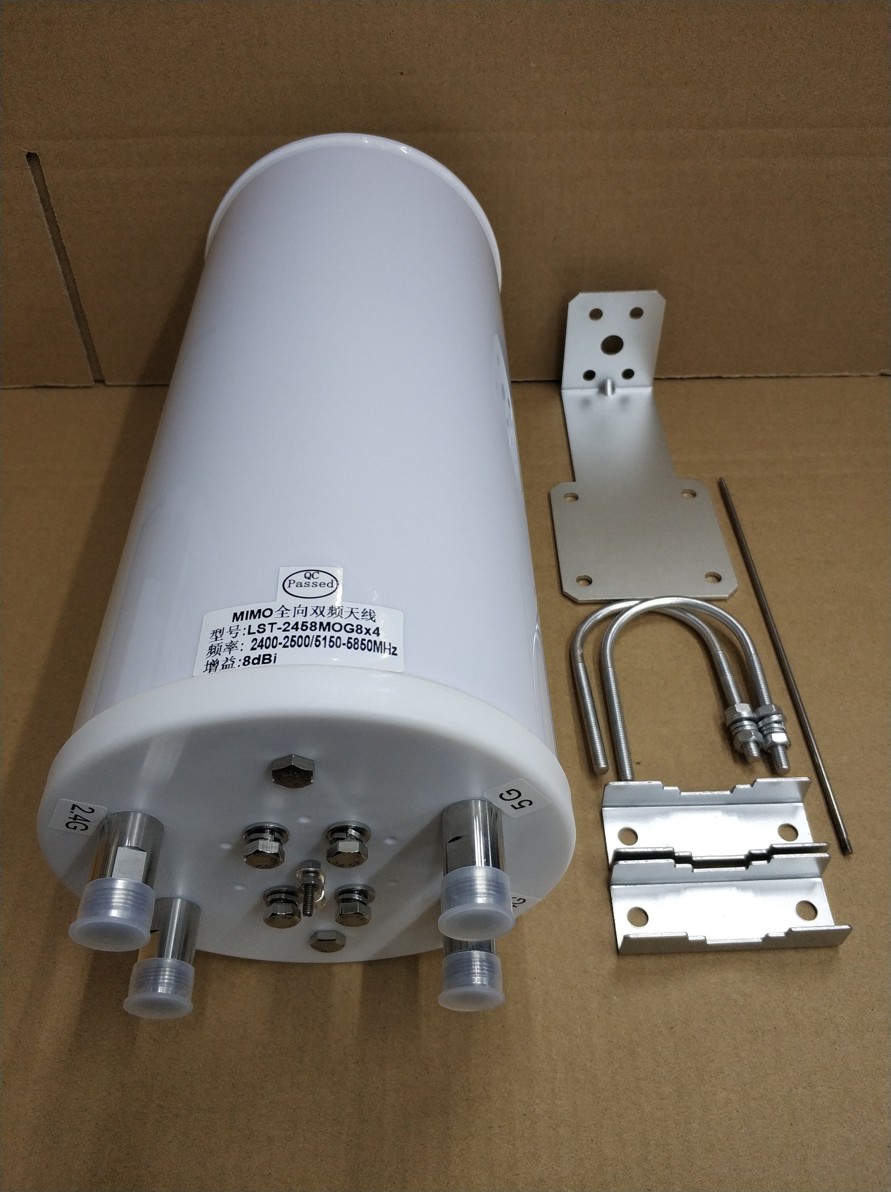 Joint-time pass 2 4GX2 and 5G 5 8GX2 dual-polarization 8dBi dual-frequency four-interface MIMO omnidirectional coverage antenna