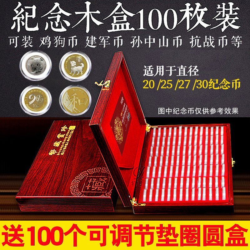 Tiger Year Commemorative Coin Solid Wood Collection Box 100 Pieces Mount Taishan 5 Yuan Commemorative Coin Collection Box Zodiac Tiger Bull Coin Founding 10 Yuan Commemorative Coin Storage Box Adjustable 25 27 30MM Antioxidant Round Box