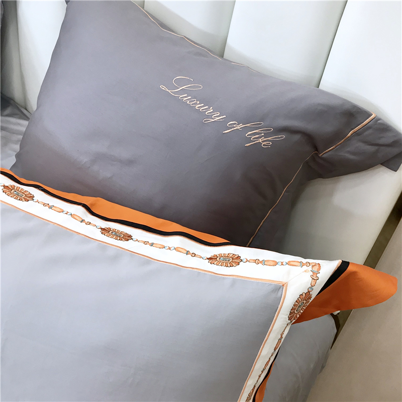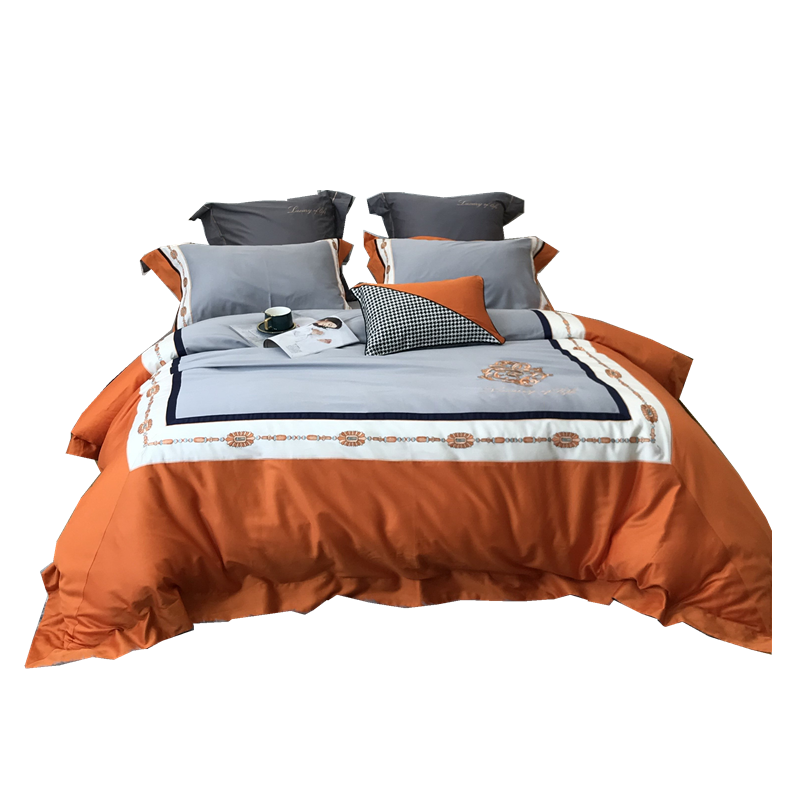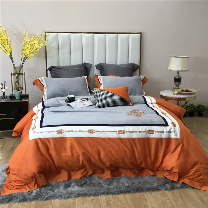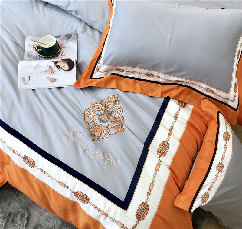 European and American modern wind 60 long suede cotton four sets minimalist European style embroidery splicing quilt cover 1 8 m bedding