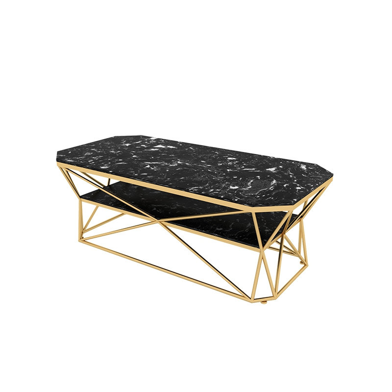 Popular light extravagant tea table Nordic rectangular tempered glass table small family type Double-layer fashion creative minimalist postmodern
