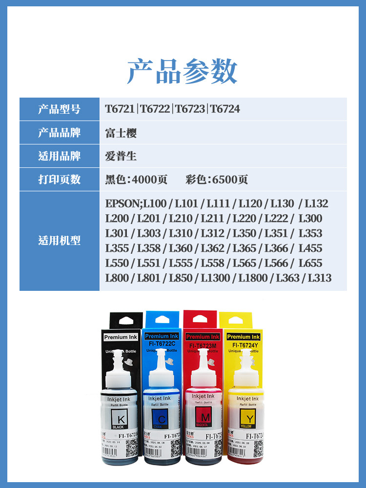 Fuji Sakura T8591 672 004 Universal 002 ink is suitable for Epson M105 M205 L605 L101 130 310 380 455 1118 3115 5198 printer ink