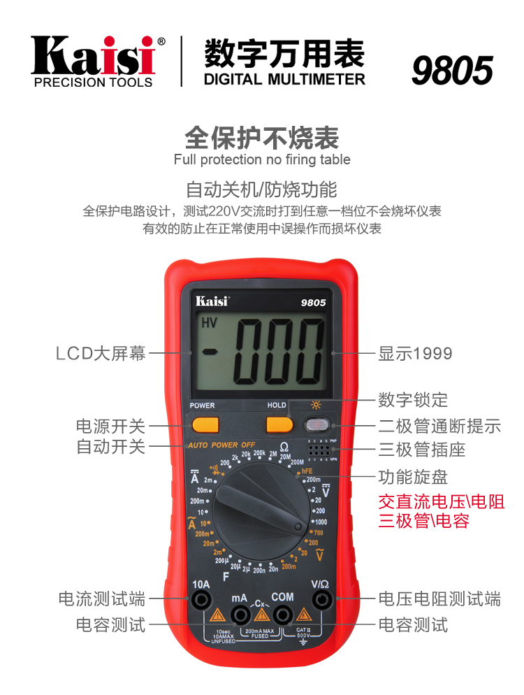 kaisi digital multimeter mobile phone repair measurement motherboard circuit high-precision multimeter automatic sleep