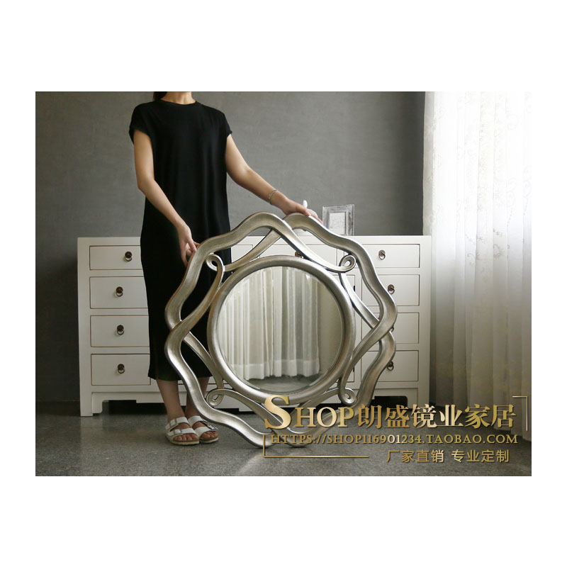 American retro art wall-mounted Xuanguan mirror living room dining side mirror creative background wall decoration hanging mirror custom