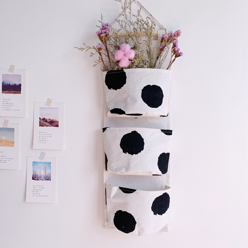 South Korean ins minimalist points containing hanging bags Three pockets of cotton numb art door rear storage bag Dormitory Containing God