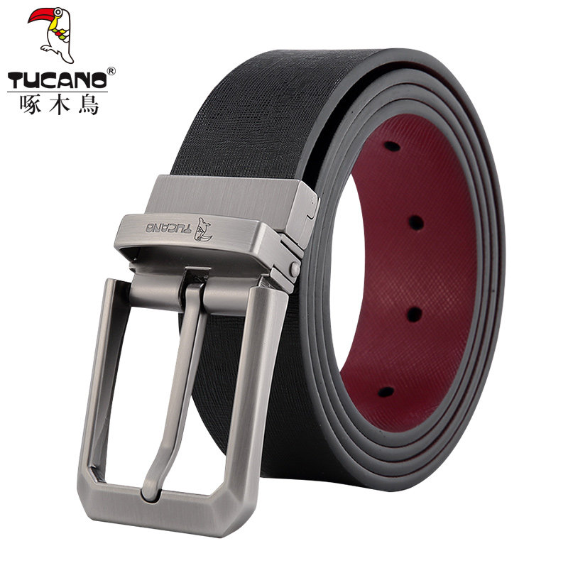 Woodpecker Leather Strap Men Genuine Leather Pin Buckle Red Belt Man's life year Young Korean version pants with damp cow leather