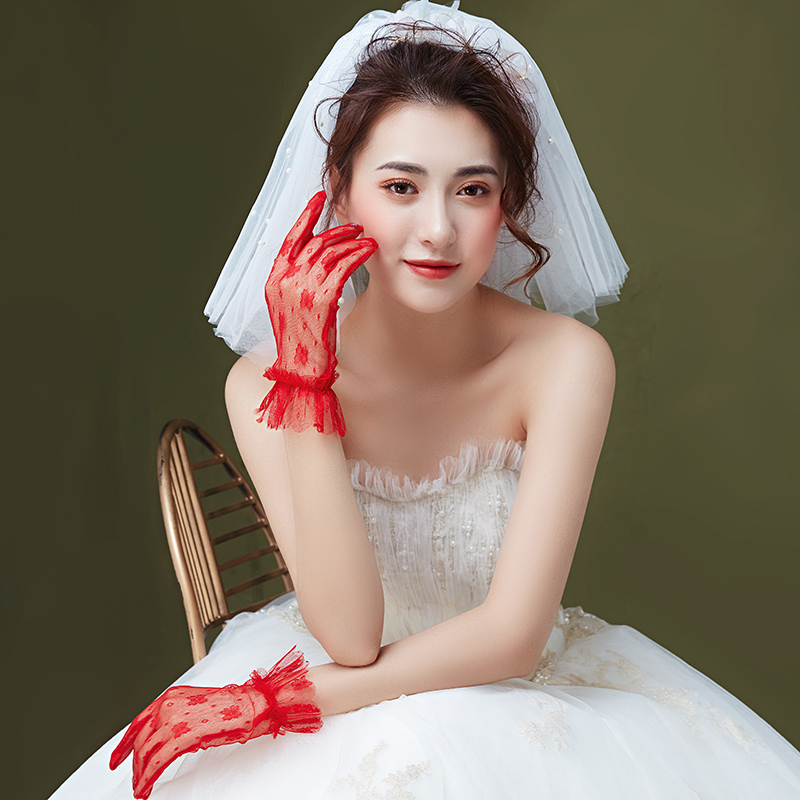 Bride Gloves Wedding Lace Han Style Wedding Dress Gloves White Red Short Version Evening Gown Toast and Gloves Champagne