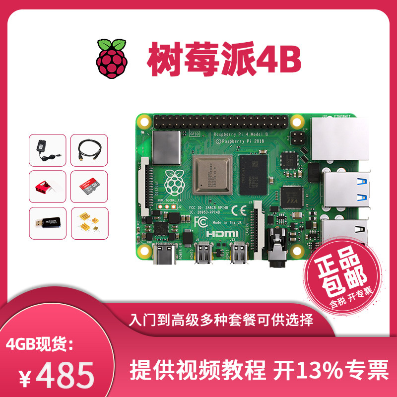 Raspberry Pi 4b development board kit 4th generation Python programming 3b computer handheld send tutorial raspberry pi