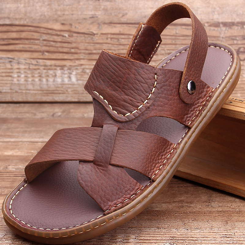 Men's Sandals 2022 new summer beach slippers with real leather bullish bullish solid sandals