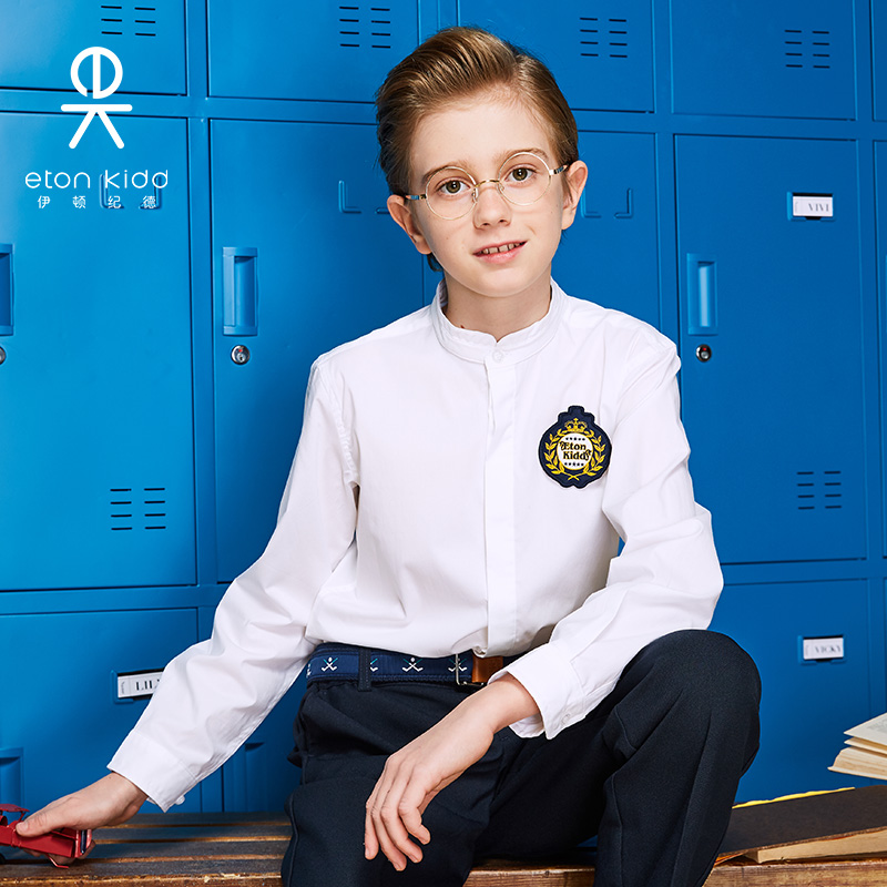Eaton Chronicle Light Chinese Style Gift Instrument Fall Boy White Shirt Double Collar Long Sleeve Full Cotton Shirt 15C155