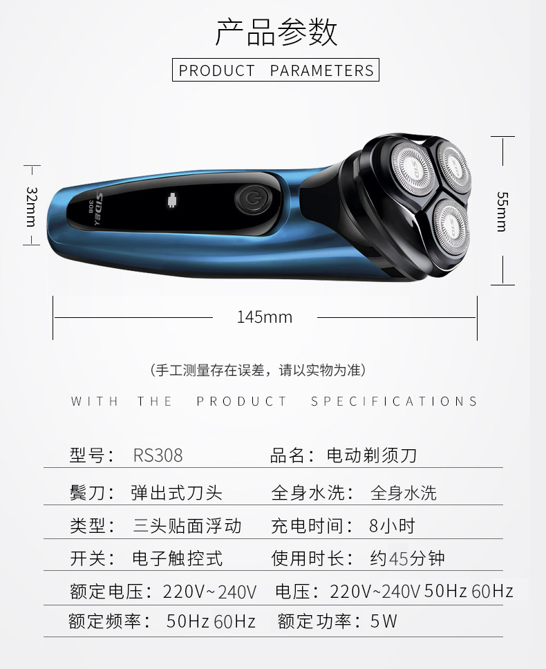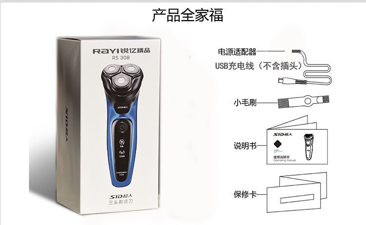 Superman Electric Shaver Men's Rechargeable Razor 3D Floating Head Whole Body Washable Beard Knife RS308