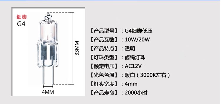 Halogen lamp beads G4 low pressure 12v 20W 10W crystal lamps plugged in mini bulbs Halogen tungsten bead bulbs