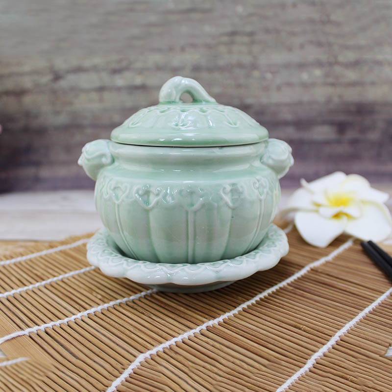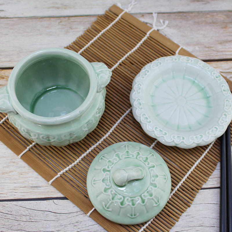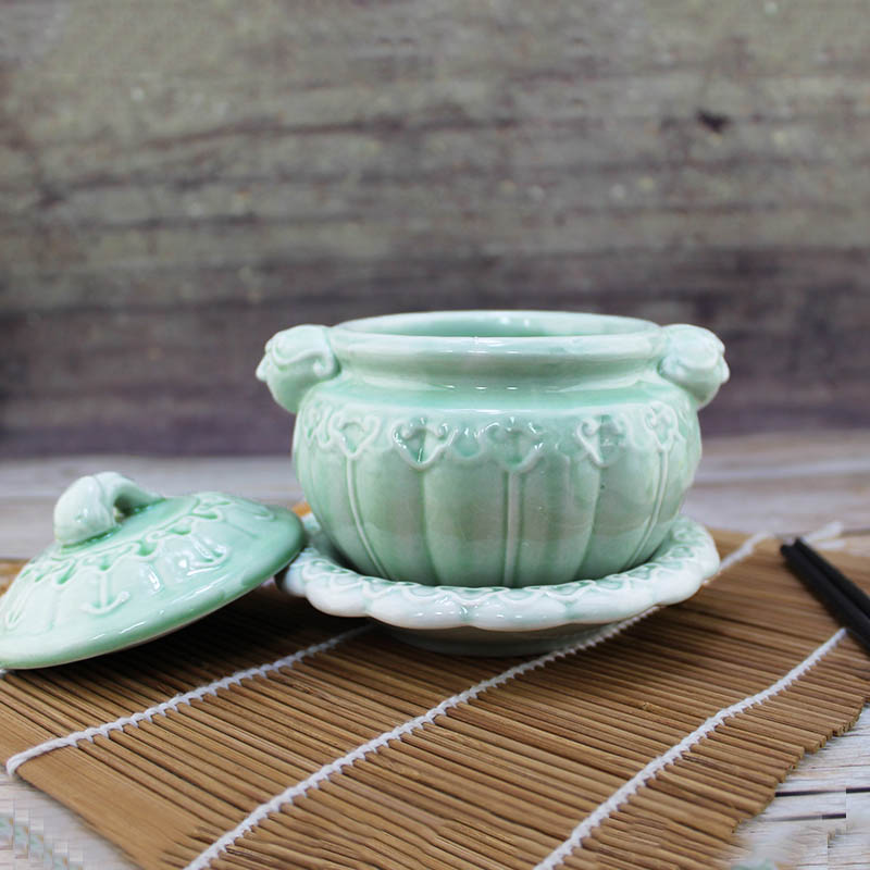Glazed colour pure green lace with saucepan with bottom disc One person a saucepan with a small saucepan with a small saucepan