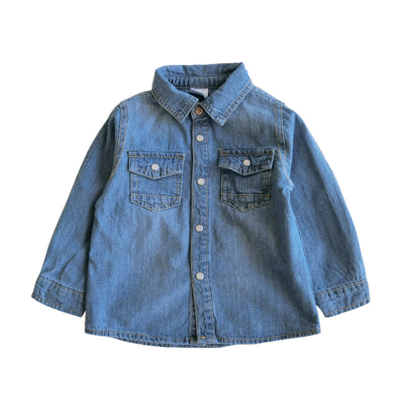 2022 spring autumn new children pure cotton denim shirt boy hit bottom cardiovert girl slim fit long sleeve shirt