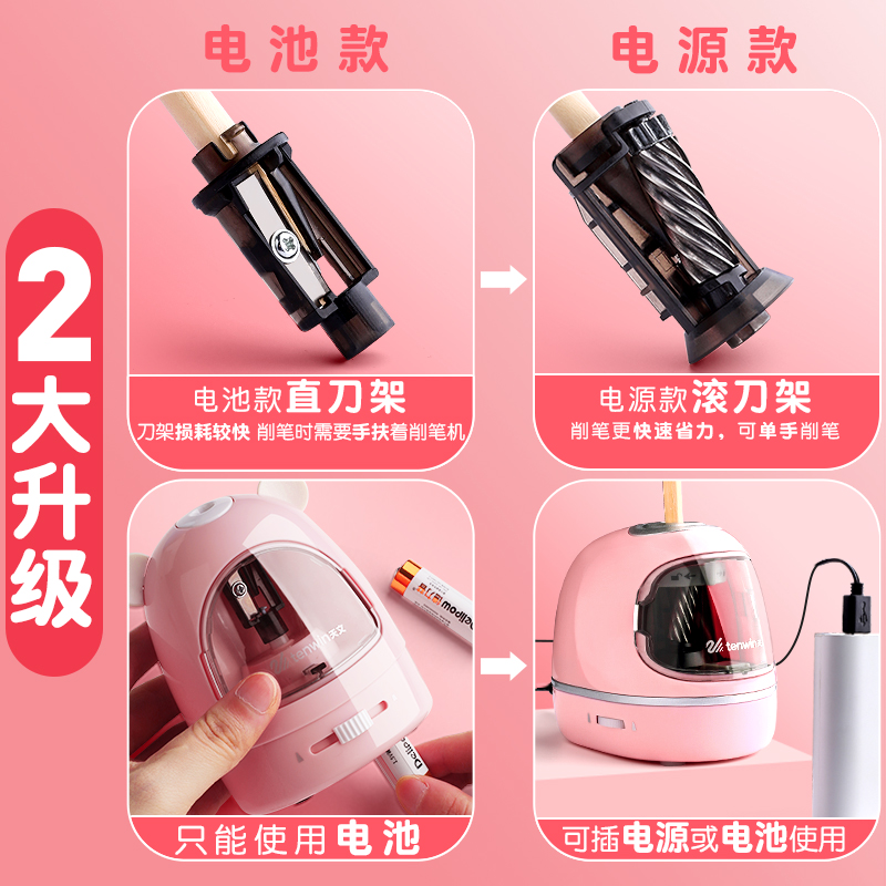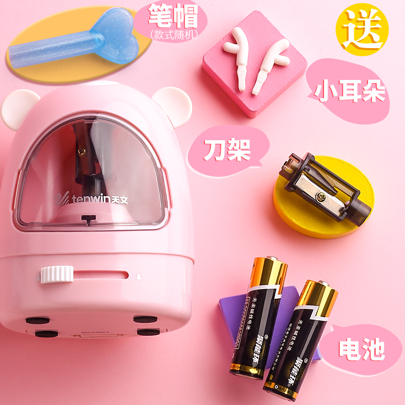 (Battery 2-piece set) Pink 4 batteries + 2 knife holders + electric eraser
