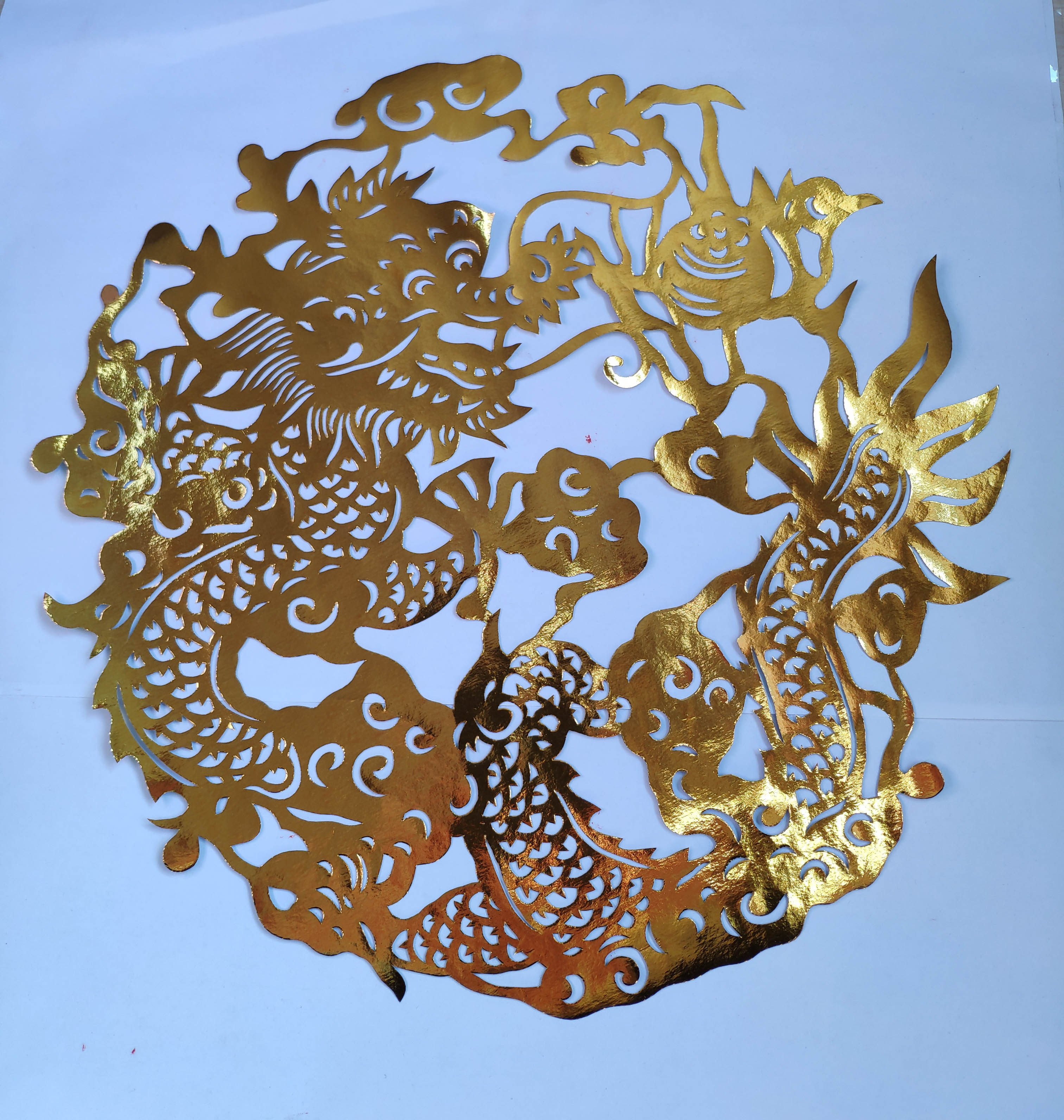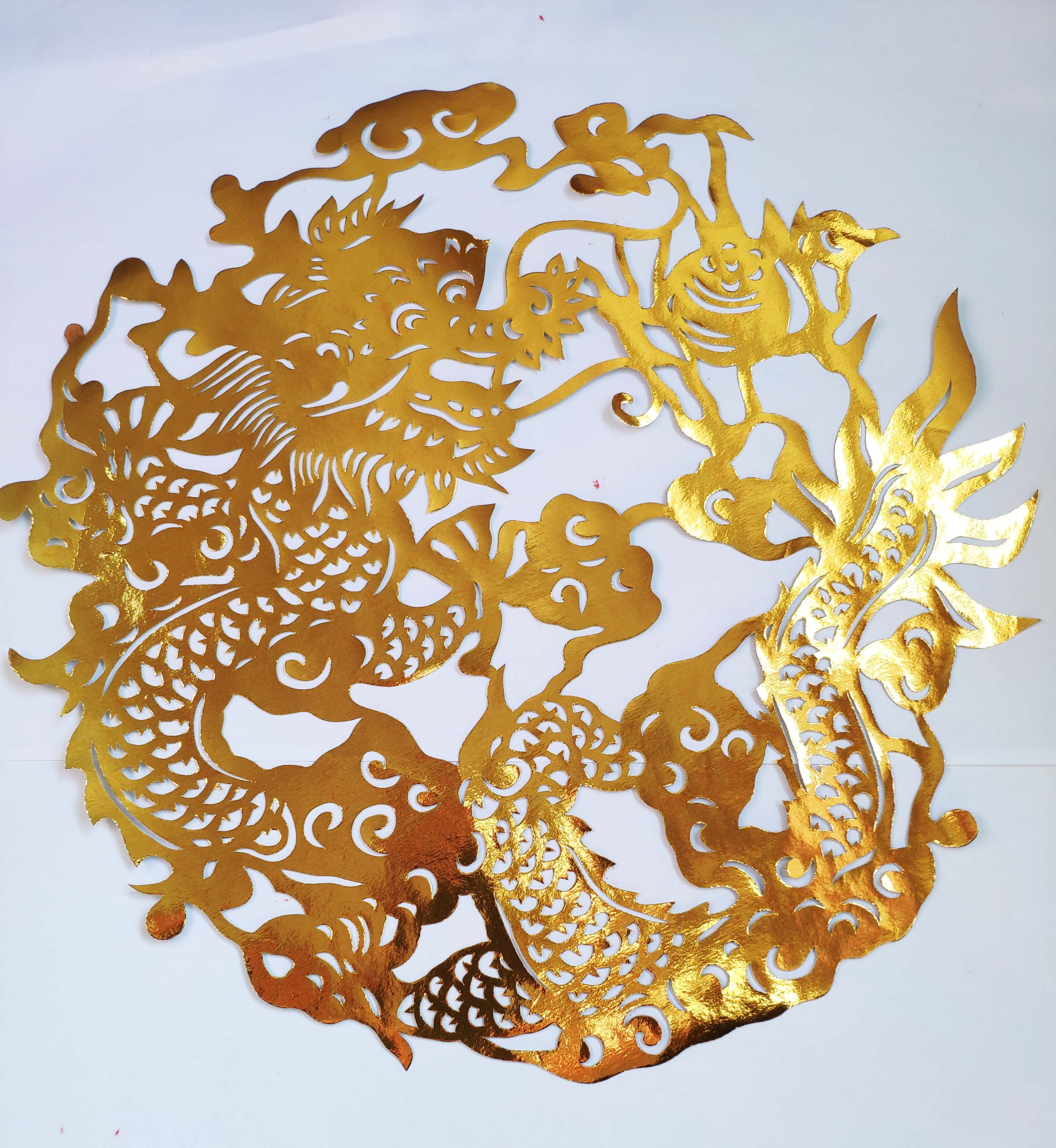 Golden Dragon Cut Paper Window Flower Cut Painting Decoration Painting Pure Hand Hollowed-out Paper Sculpted Single Face Gold Leaf Paper Dragon Gold