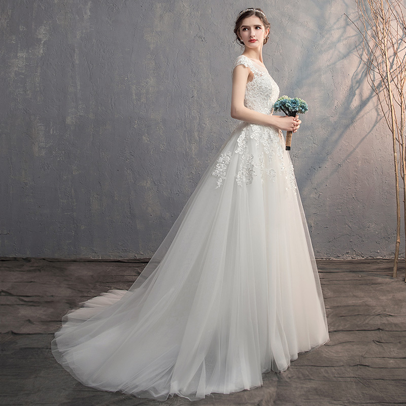 Wedding dress 2021 new temperament bridal woman simple forest department small man word shoulder 2020 atmospheric tail light