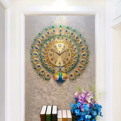European-style living room clock creative personality Retro peacock wall clock mute phoenix quartz clock wall watch Home decoration