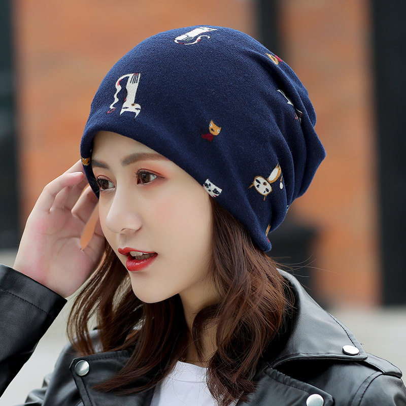 Hat female spring autumn winter Korean version of the tide set headscarf two-use hat hundred wind-proof warm neck cover ear bag head cap