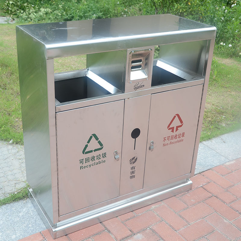 Trash can stainless steel household inside and outside sorting fruit leather case hotel property lobby upright tobacco grey round new