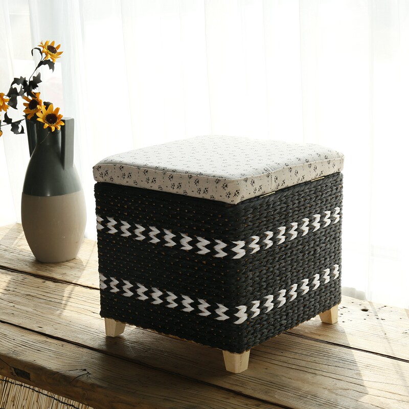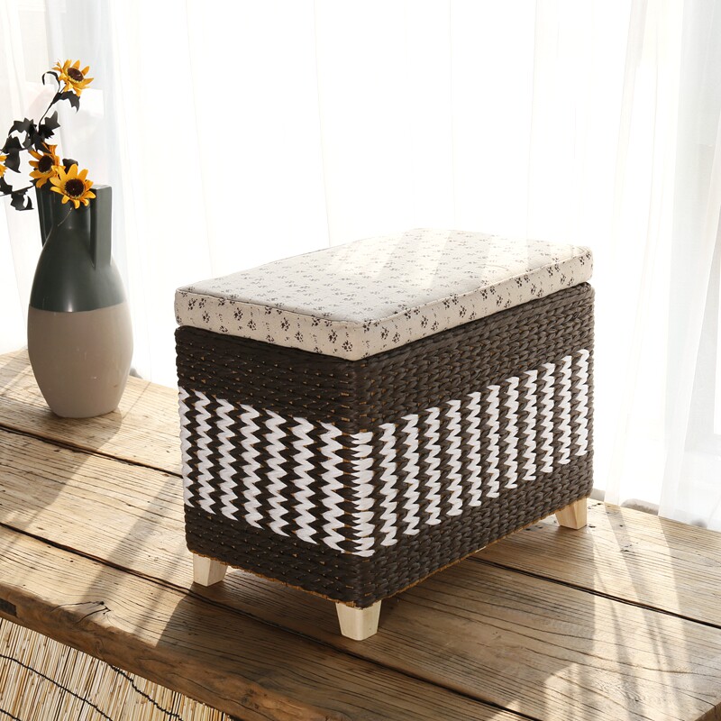 Hand-woven storage stool storage stool rattan shoe stool footrest solid wood multi-function can sit people finishing box