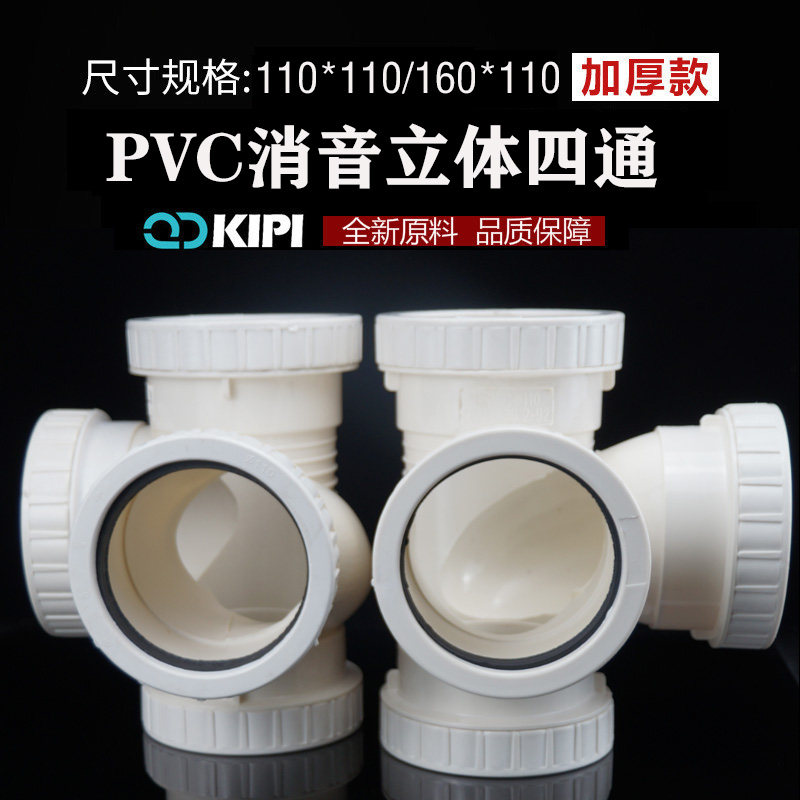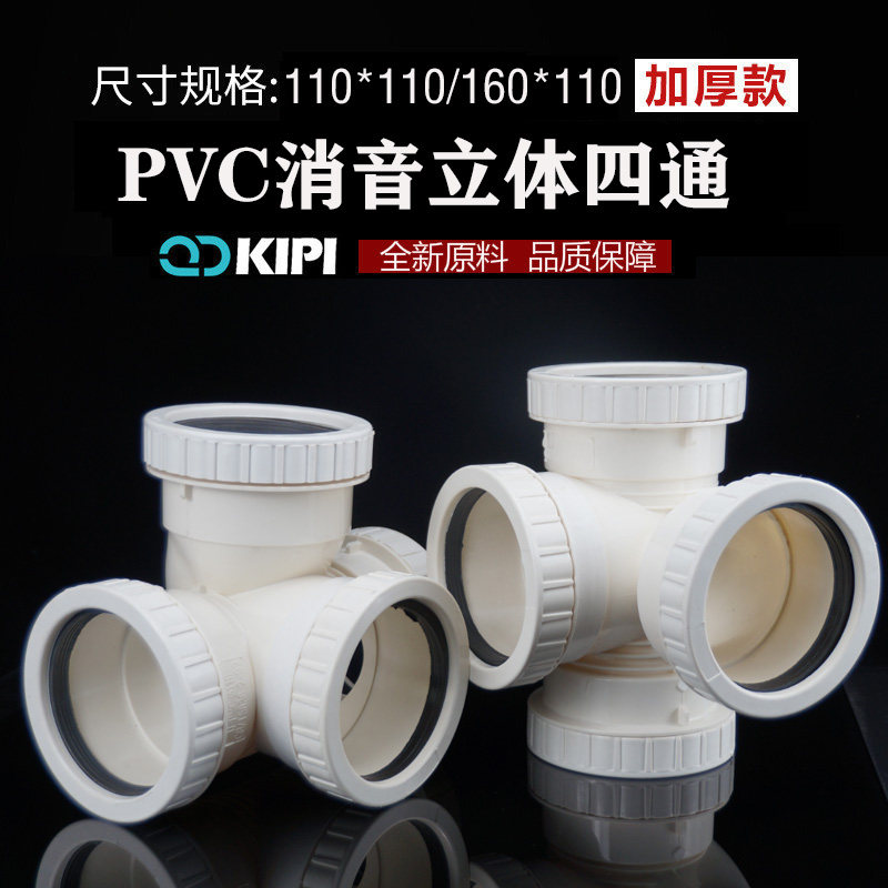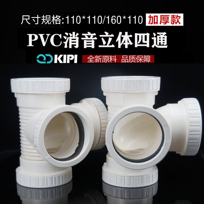 PVC sound-absorbing three-dimensional four-way mute spiral thickening 110 drainage pipe joint accessories 160 nut corner pass