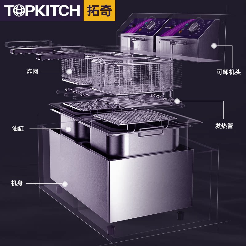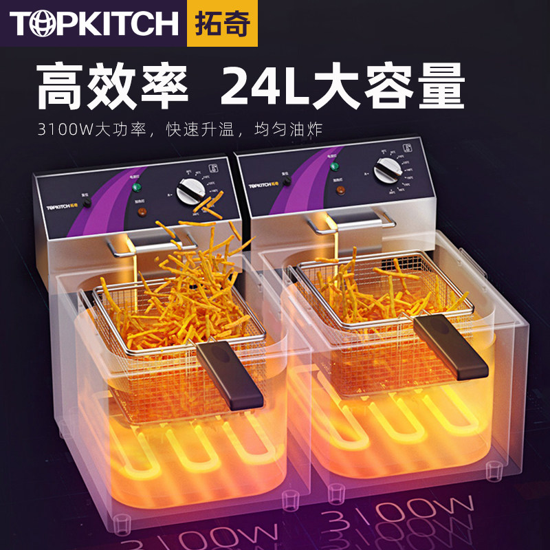 TOPKITCH Turki Fryer Double Cylinder Electric Fryer Commercial Thickening Stall Fried Fritter Chicken Steak Skewer Machine 24L