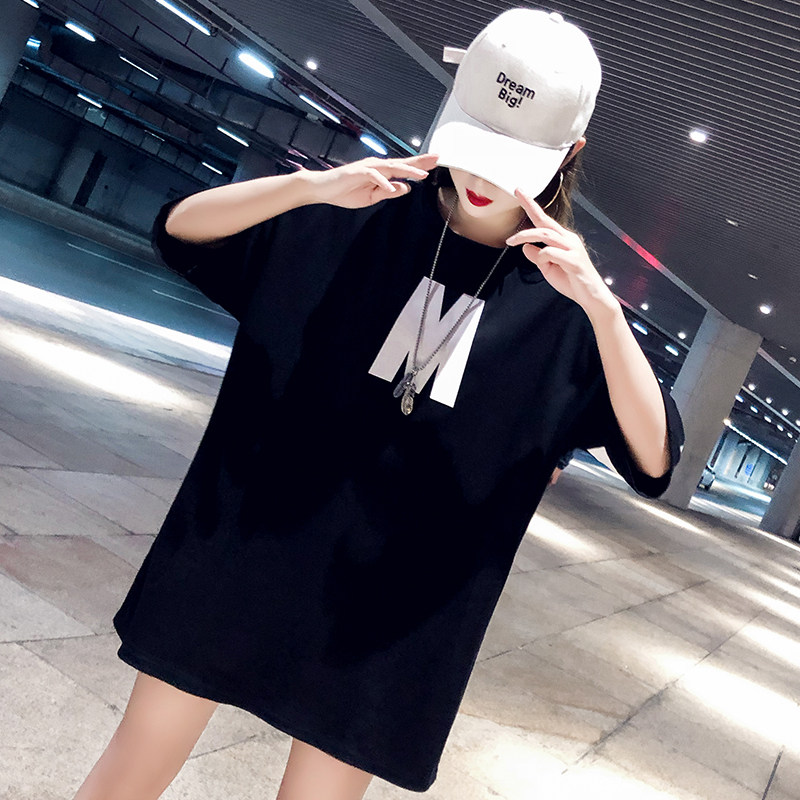 Eurostock Large Edition T-shirt female short sleeve 2022 new Korean version Chauga port Wind half sleeve summer romance Long version with medium long version