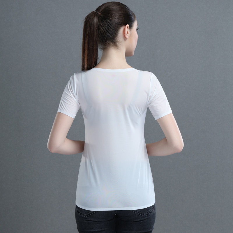 Lady Sexy ice silk knit cardiovert jacket head short style undershirt round collar blouse blouse spring summer dress short sleeve T-shirt woman white