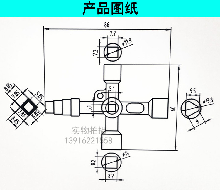Multi-functional electric control cabinet train high-speed train external square wrench four-corner triangular key subway 7MM key