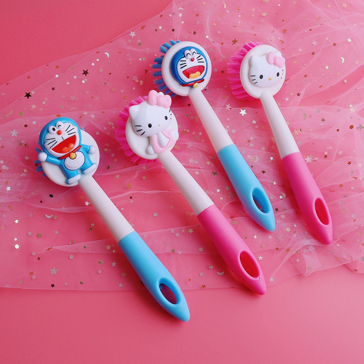 Teenage Girl Hearts Kitchen Multifunction Cute Long Handle Pan Brush cleaning brush Long handle Kitchen Pan Brush Bowls Brush Pan Brush