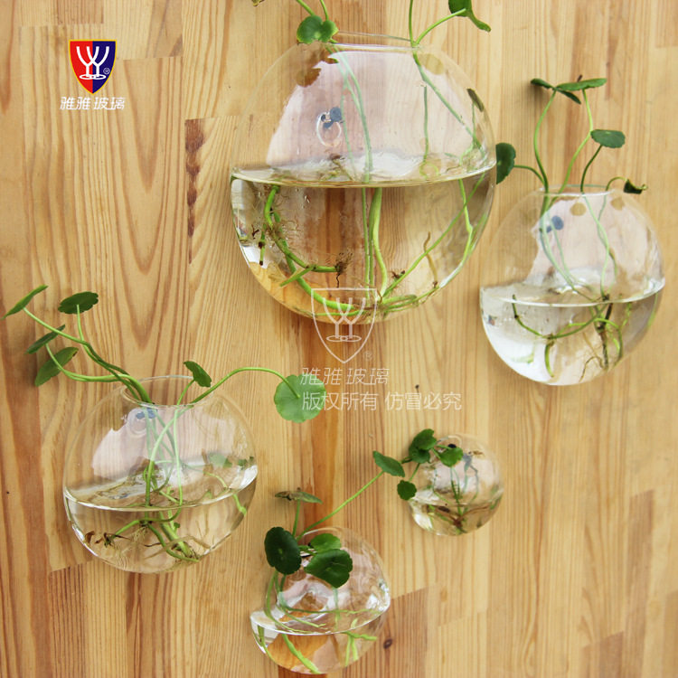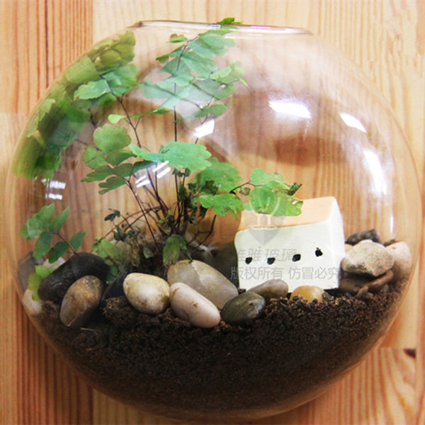 Hydroponic succulent glassware can be wall-mounted glass vase creative three-dimensional glass multi-functional fish tank wall hanging