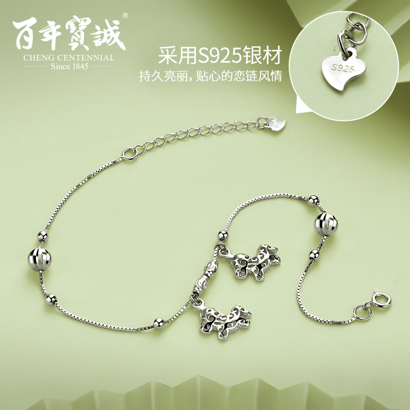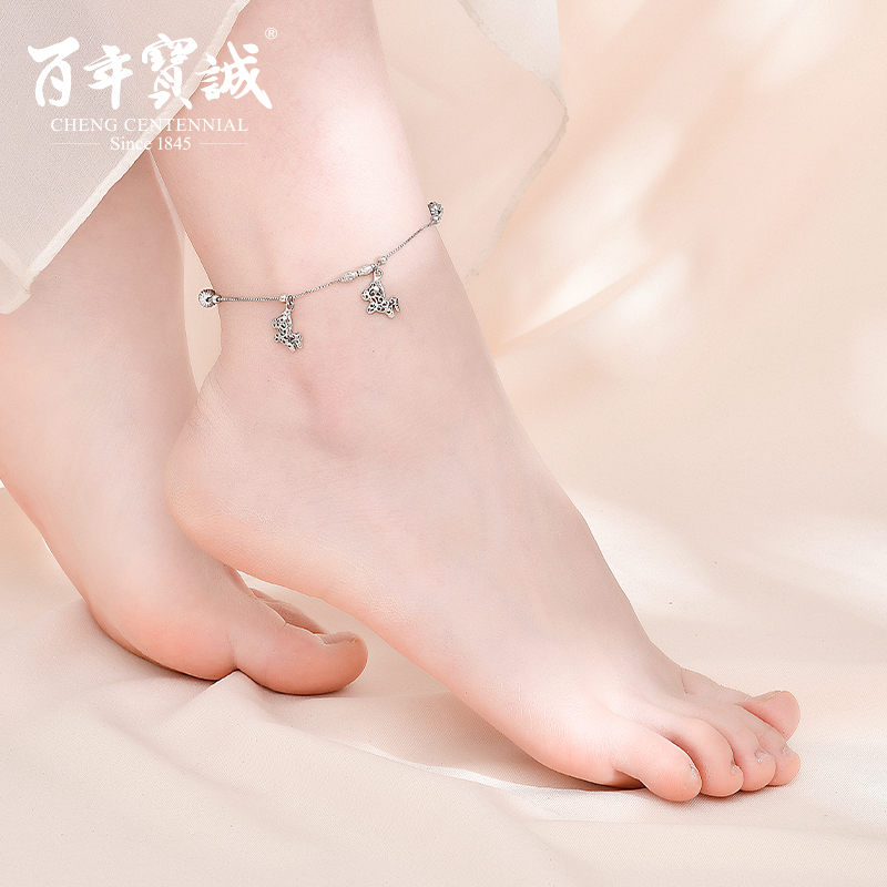 Centuries-old Baocheng silver foot-chain Women's Palace Suzuki chain Sub-bell Bell Sexy small crowdDesign Pure Silver Han Edition Brief Yosemite Department