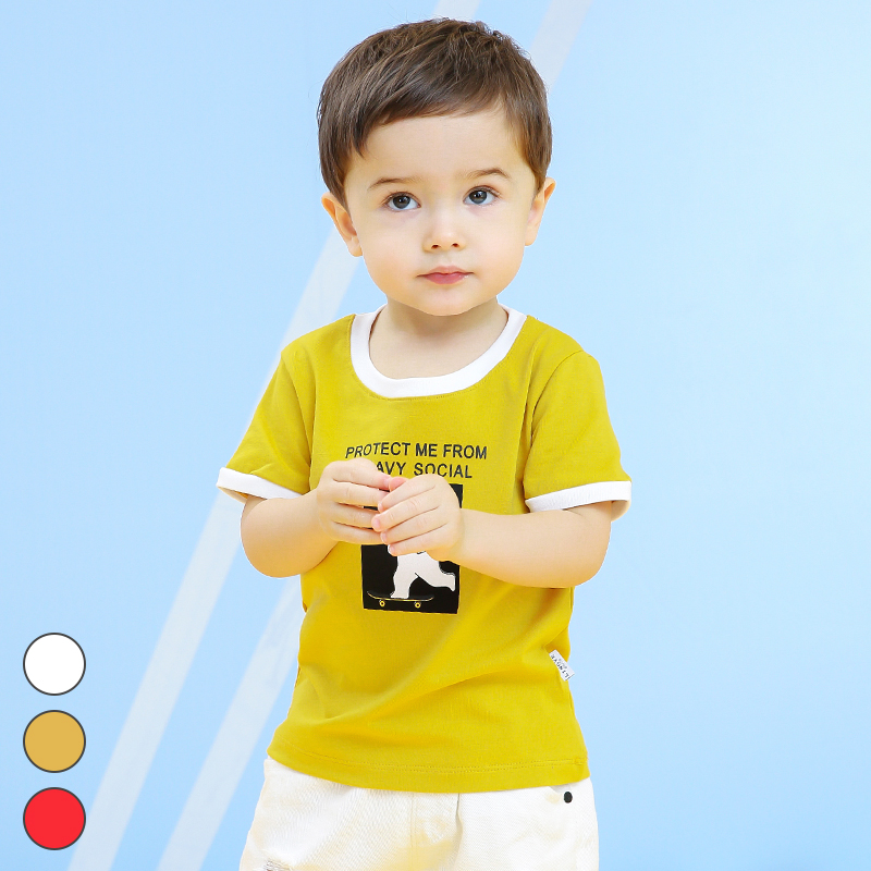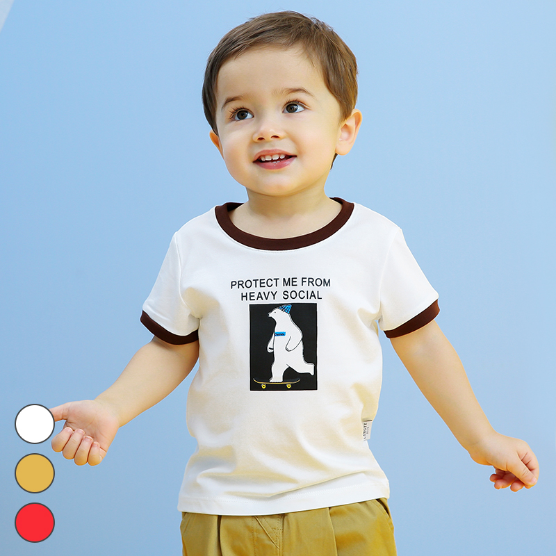 Zero also child clothing 2019 Summer new boy Han version Cartoon Bear Printed T-Shirt Pure Cotton Slim Fit Round Collar Short Sleeve