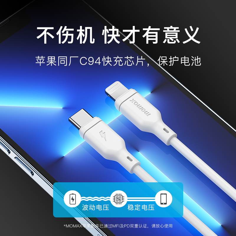 MOMAX Morimi PD Fast charging Apple 13 data line MFI certified 20W applicable 2 m long iphone12ProMax mobile phone typec turn lightn