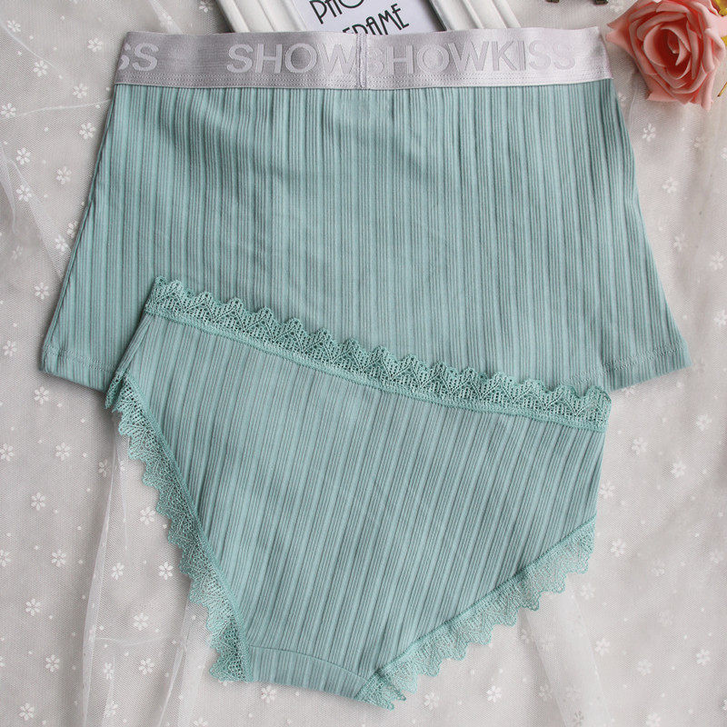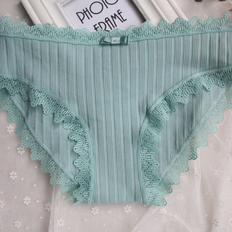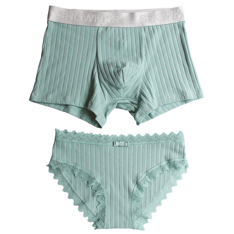 Lovers briefs pure cotton crotch male and female lingerie suit Sexy lace middle waist creative personality new flat corner triangulation