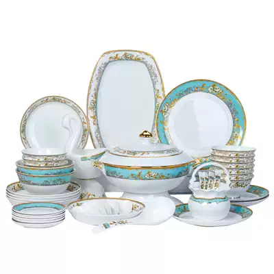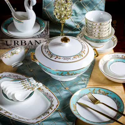 Bowl set Jingdezhen high-end bone porcelain tableware European home dishes luxury Phnom Penh court style creative gift