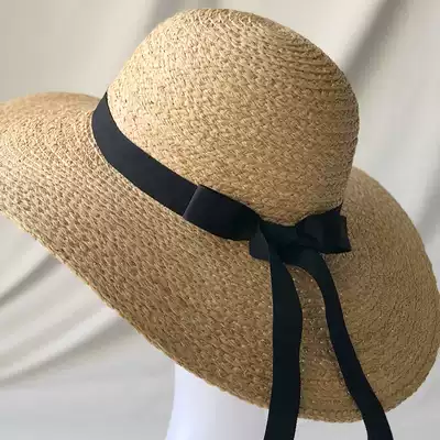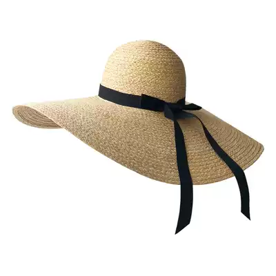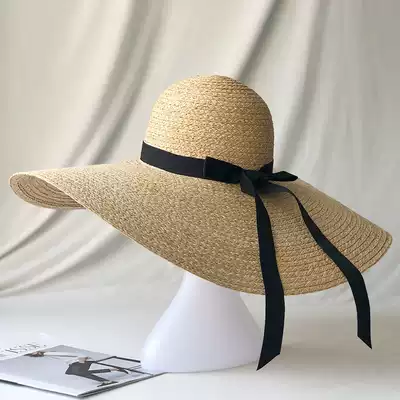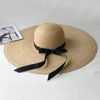 New oversized brim beach raffia grass belt sunshade straw hat model female star holiday sun sun hat can be folded