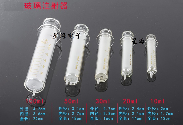 Thickened glass injector 30 50ml 100ml glass syringe enema chromatography sampling glass needle tube rubber cap