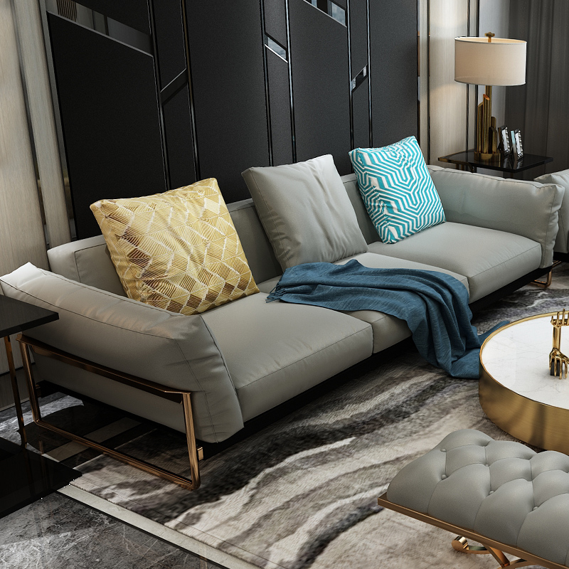 Hong Kong-style light luxury sofa leather combination small apartment post-modern living room three-person sofa minimalist down Nordic sofa
